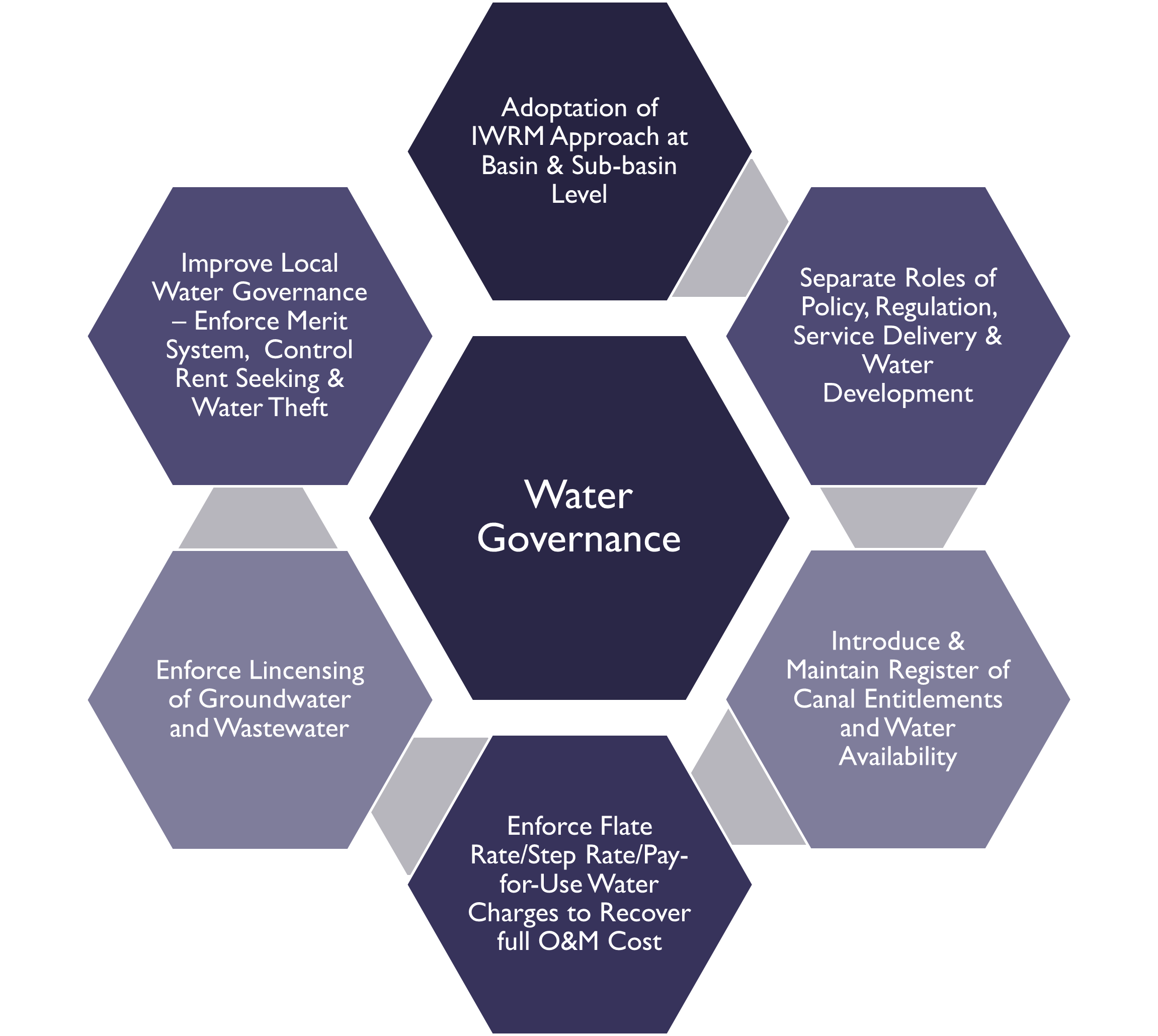Six key policy reforms related to water governance including institutional reforms are identified;