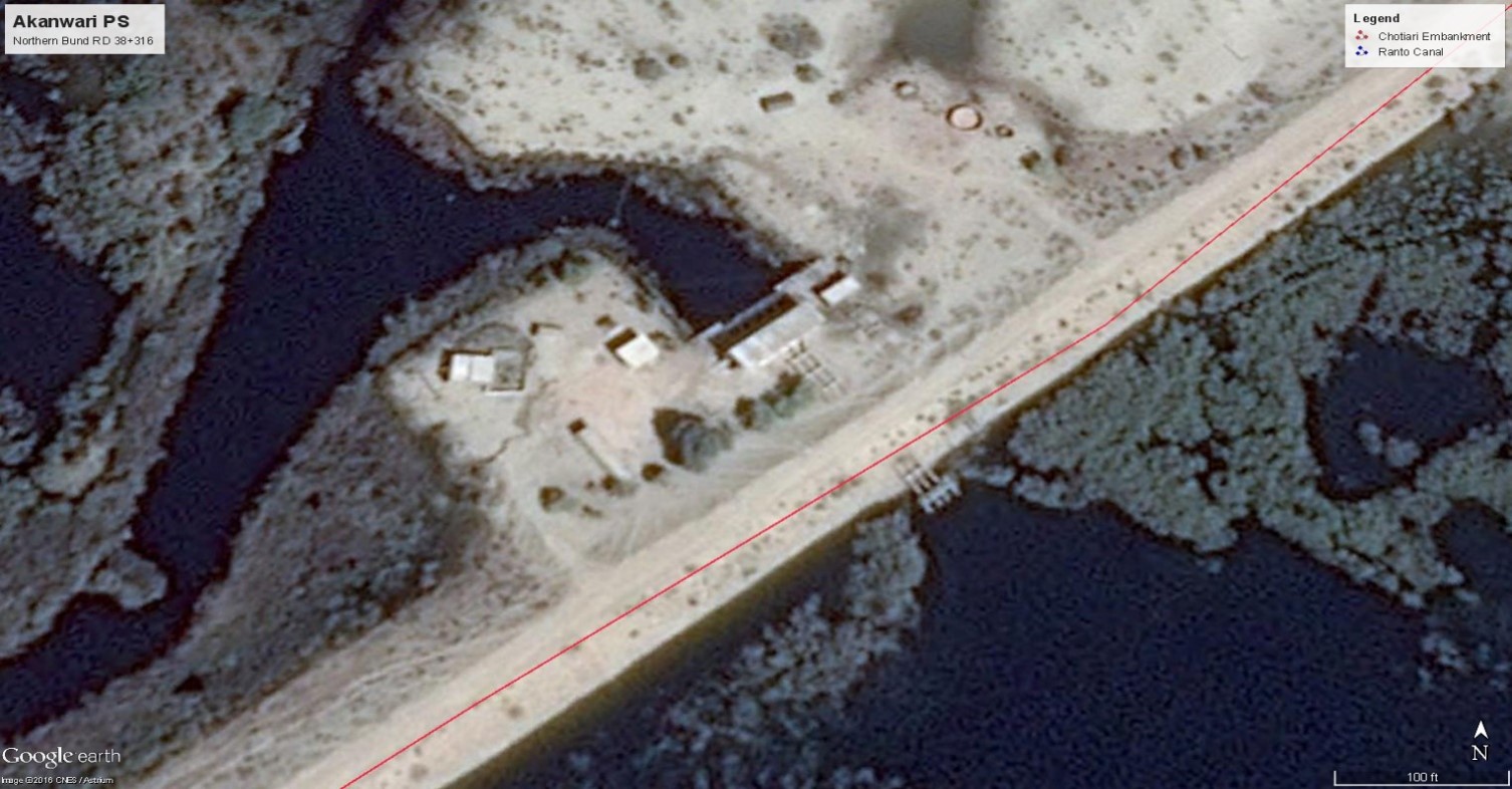 PS is provided at RD 38+316 of the Northern bund to pump back the reservoir/canal seepage, surface drainage of Akanwari deh and storm drainage water to the reservoir.The PS is provided with 7 number – 20 Cfs electrically driven pumps.
