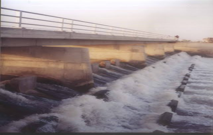 Structure is designed as an uncontrolled weir to operate under wide range of downstream water levels, from dry downstream to Normal Reservoir Level.It is reinforced concrete construction, located 23 km from head and at the start of Northern bund.