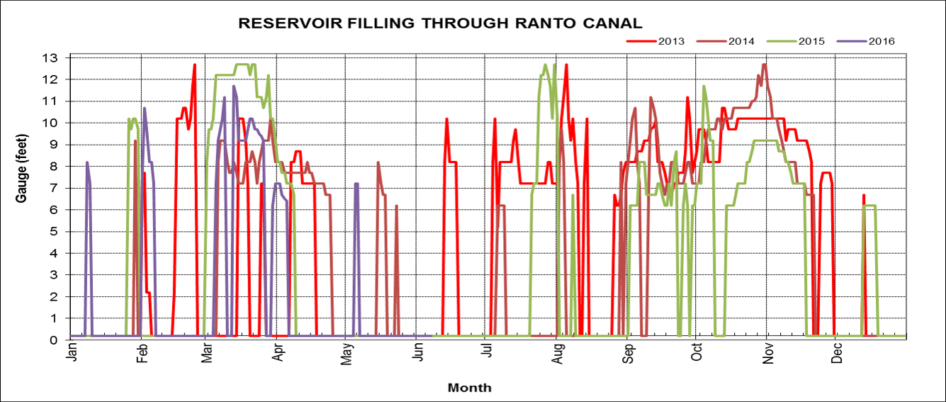 • The inflow to the reservoir is designed to be 6500 Cfs through Ranto Canal.