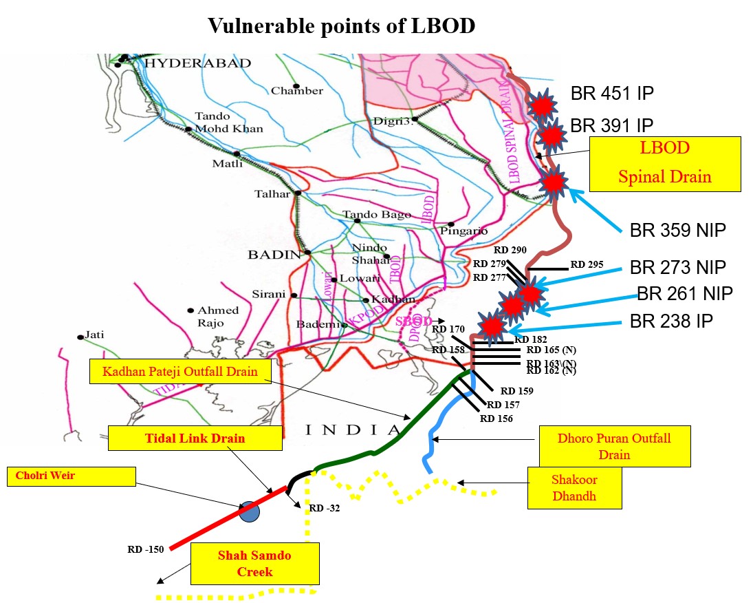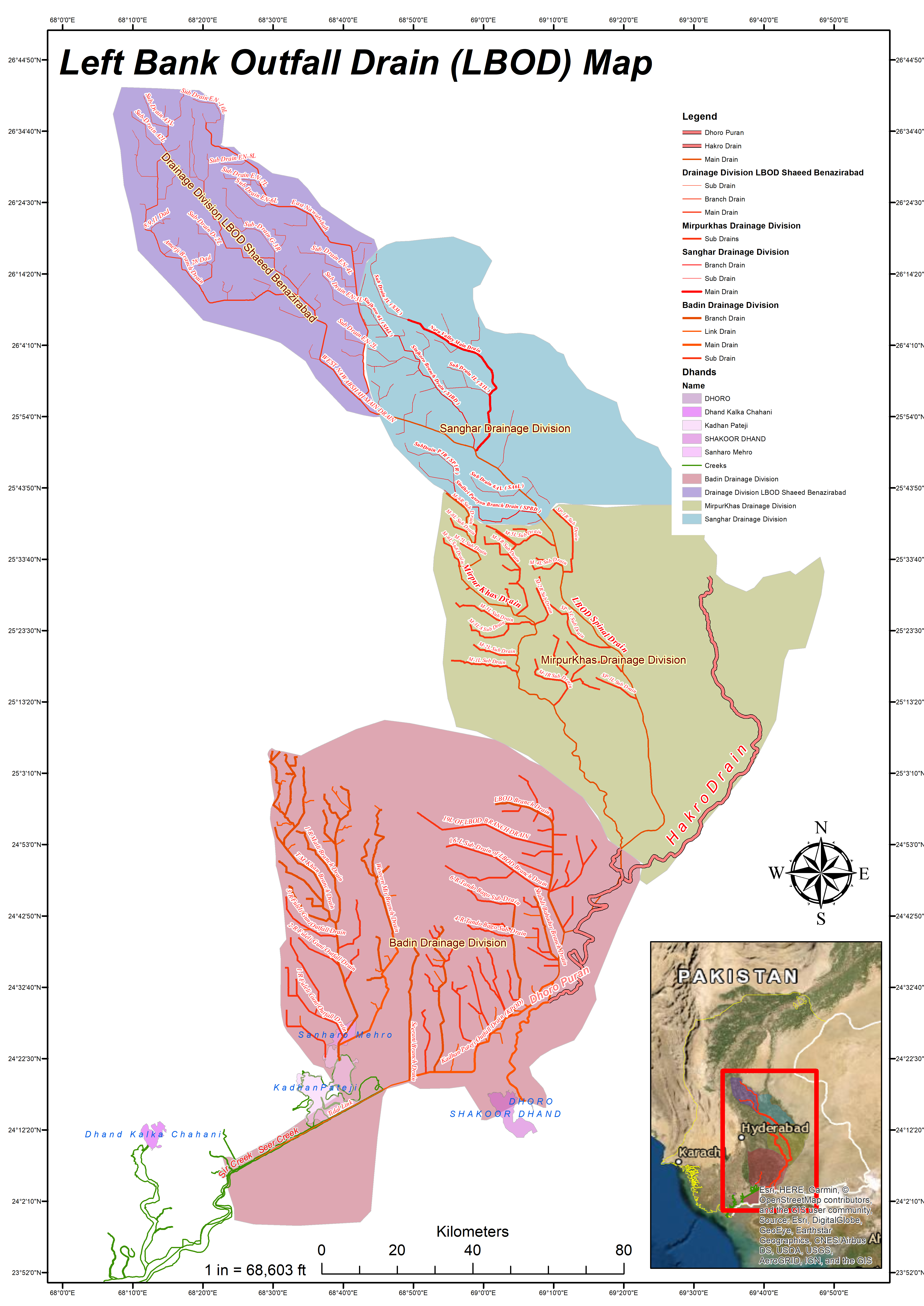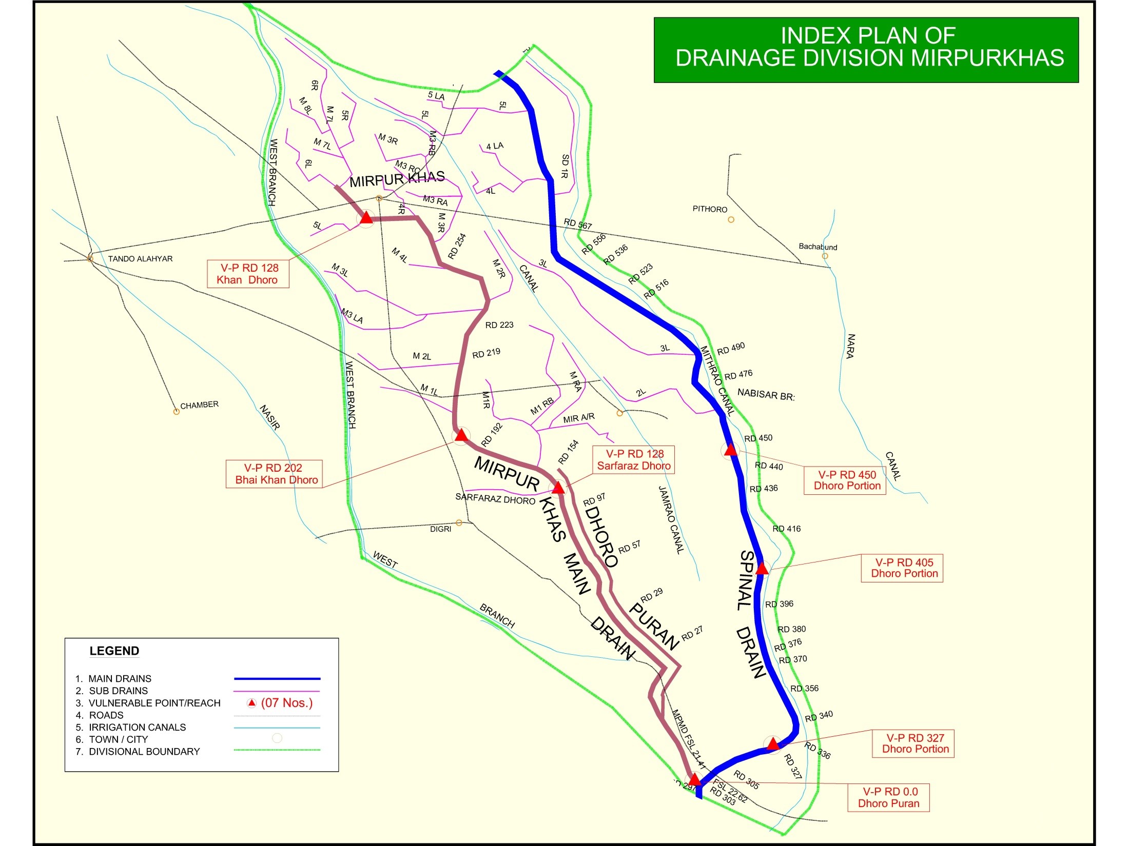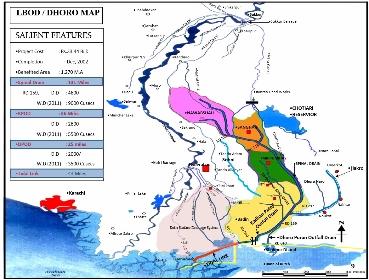 Background : The Left Bank Outfall Drain (LBOD) Project, approved by the International Development Association (IDA) on December 13, 1984, received a credit of $150 million. LBOD Stage I, implemented between 1984 and 1997, aimed to address waterlogging and salinity issues in 1.27 million acres across Shaheed Benazirabad, Mirpurkhas, Sanghar, and Badin Districts. The project's key component is the Spinal drain, which connects the drainage network to the sea through a Tidal Link. The LBOD spinal drain collects excess drainage and distributes it through a weir to two branch drains, the Kadhan Pateji Outfall Drain (KPOD) and the Dhoro Puran Outfall Drain (DPOD). The system was designed to direct highly saline drainage into the KPOD and ultimately to the sea via the 26-mile long canal known as the Tidal Link.