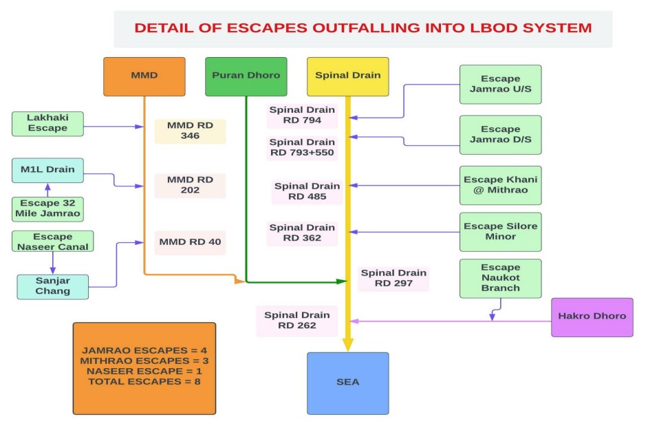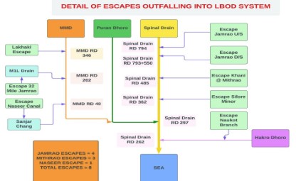 • Contribution of Aujo Escape to the reservoir operation of Chotiari is yet to be accounted.
