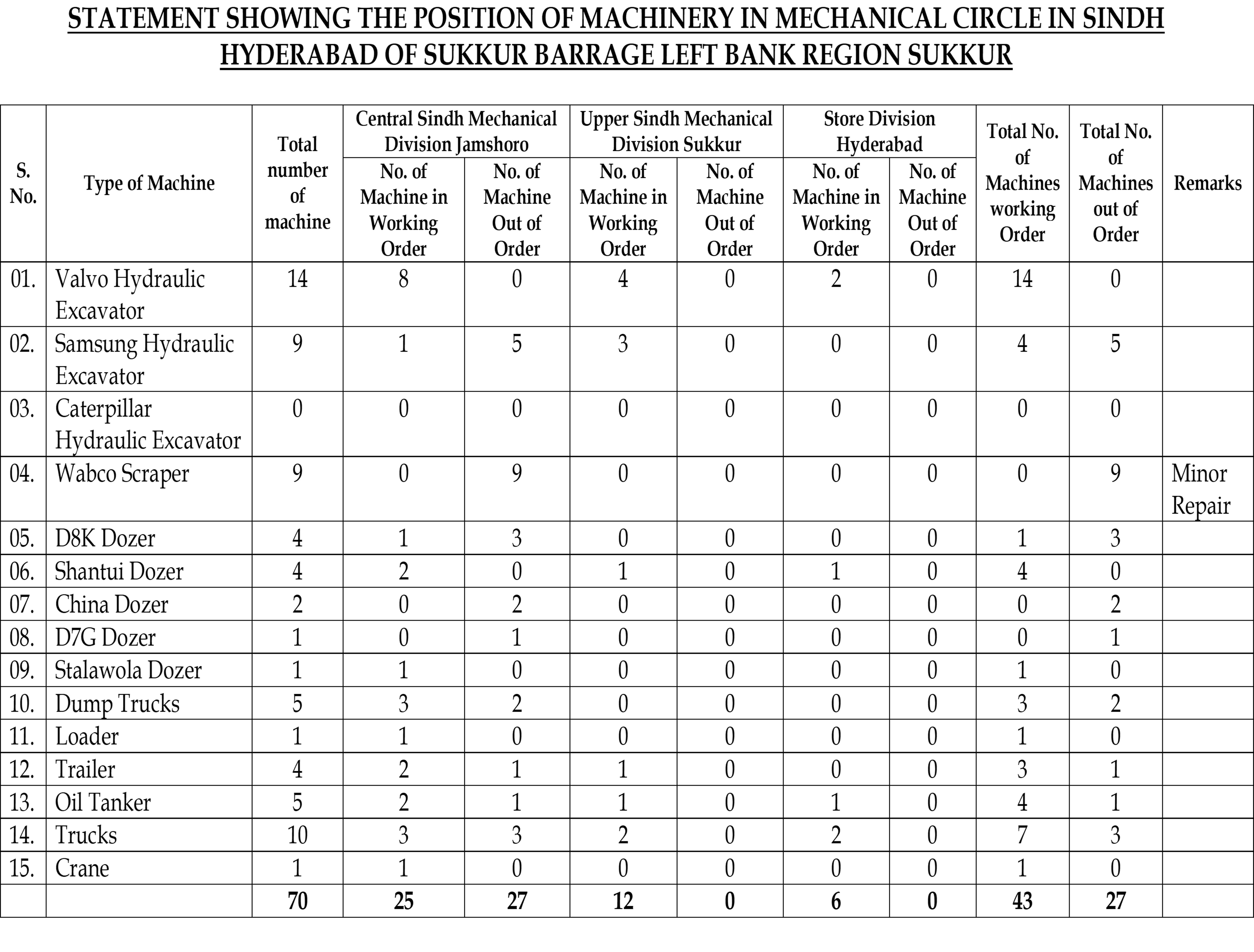 | Total Rohri Canal Circle Hyderabad | 01 | 16 | 70 | 199 | 5806 |